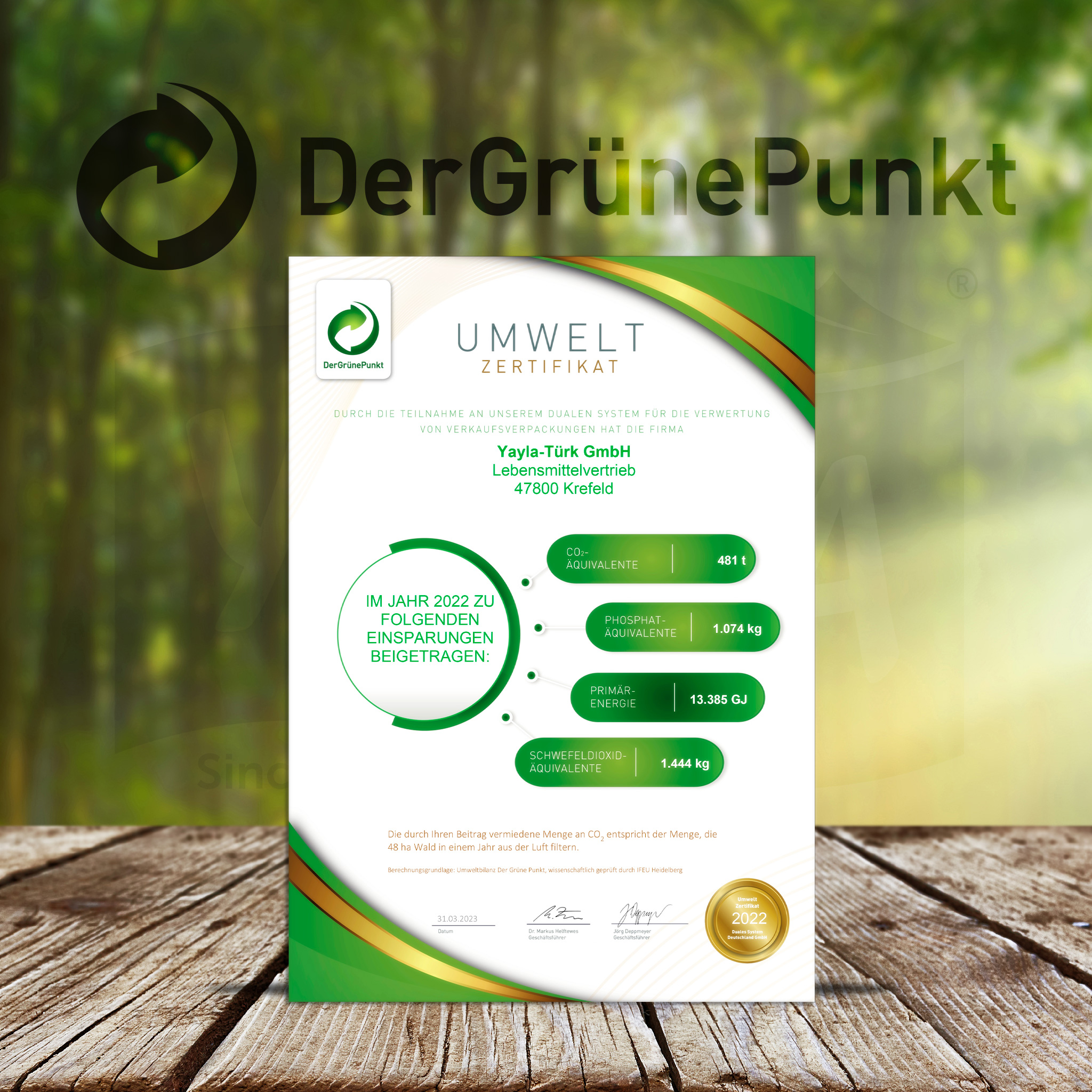 As a food distributor, we are aware that the outer packaging of our products creates waste and uses up a lot of resources. Since we cannot and must not do without packaging for our fresh food, we want to at least make it as sustainable as possible. That's why we participate in the dual system of “Der Grüne Punkt” and do our part to ensure that the necessary packaging stays in the cycle and uses significantly fewer resources.
